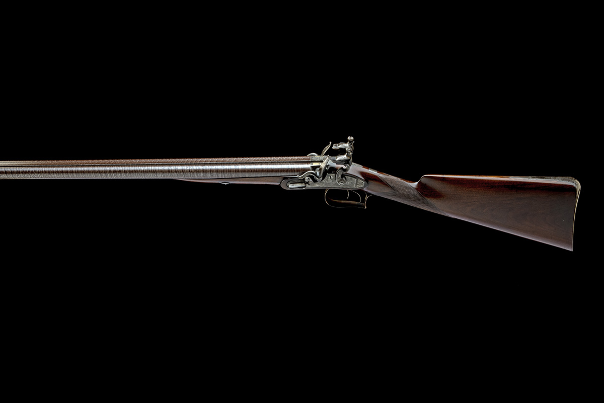 A LATE 14-BORE FLINTLOCK DOUBLE-BARRELLED SPORTING GUN, serial no. 10299,