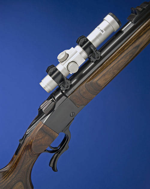 27in. blued nitro Arthur Smith barrel, large bead fore-sight, single standing leaf rear-sight, fitted with an Oakshore electronic 'Ultra Dot' sight, blued action, 15in. laminated pistolgrip stock including 2in. leather-covered recoil-pad, polished pistolgrip-cap, quick detachable sling mounts. This rifle appears to be very little used.