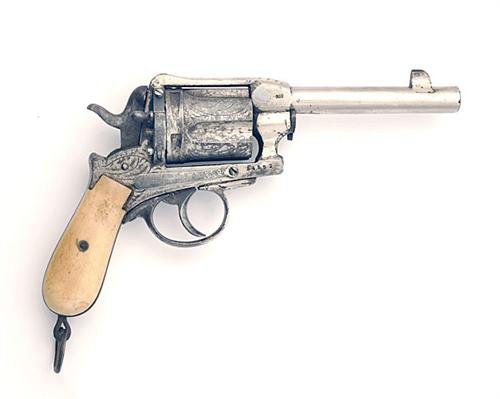 A DEACTIVATED 11mm DASSEN PATENT FIVE-SHOT DOUBLE-ACTION GASSER-TYPE REVOLVER, serial no. 14552, Belgian, with 5in. sighted barrel, fluted cylinder, frame marked 'DASSEN PATENT' and 'SCHUTZ MERKE', bone grips, lanyard ring, the frame and cylinder with scroll engraving, retaining some original nickel-plated finish, with certificate