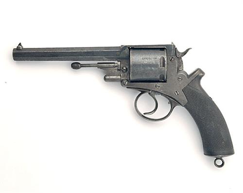 * A DEACTIVATED SCARCE .450 SERVICE REVOLVER SIGNED ADAMS, MODEL '1872 MKIII' serial no. 9297, and date stamped "4.77", 6in. sighted barrel, John Adam's oval trade mark and logo to frame, chequered walnut grips and butt-cap with lanyard ring, discoloured throughout. The John Adams MkIII revolver was the official sidearm of the British Army until replaced by the Enfield MkI revolver in 1880, with certificate