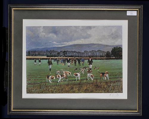entitled "The Shrivenham Beagles in the Vale of the White Horse", 25in. x 20 1/2in. including wood frame, single mounted and numbered 107 of 450 copies.
