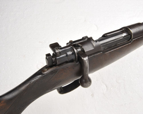 JOHN RIGBY & CO. 7X57mm MAUSER BOLT-MAGAZINE SPORTING RIFLE, serial no. 1120, 25in. barrel (bore worn) sighted to 300 yards and signed 'JOHN RIGBY & CO. 72. ST. JAMES'S ST. LONDON', receiver ring marked 'WAFFENFABRIK MAUSER OBERNDORF A/N 1898', cocking-piece with mount for Rigby patent aperture sight, 14 1/4in. pistolgrip stock (cracked at hand, fore-end chipped) with chequered grip and fore-end, sling eyes (some wear throughout, metal parts discoloured).