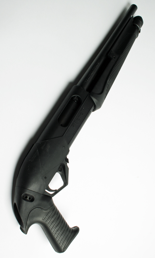 A DEACTIVATED 12-BORE MULTI-SHOT PUMP-ACTION TACTICAL SHOTGUN SIGNED BENELLI, MODEL SUPER-NOVA, serial no's. Z338381 & V3665583 recent, with unsighted 14in. cylinder-choked barrel, black rubber pistol grip and blacK ABS plastic armour panels, 26in. overall length