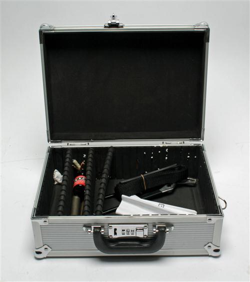 AN ALUMINIUM PISTOL CASE virtually unused, with combination lock