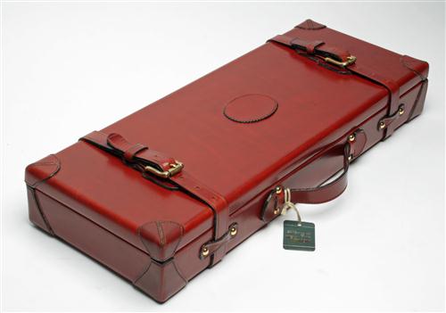 † A REY PAVON LEATHER CASED WINE GLASS SET, set of eight with one glass missing Estimate £40-60