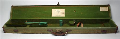 A CANVAS & LEATHER JOHN RIGBY FULL LENGTH RIFLE CASE,