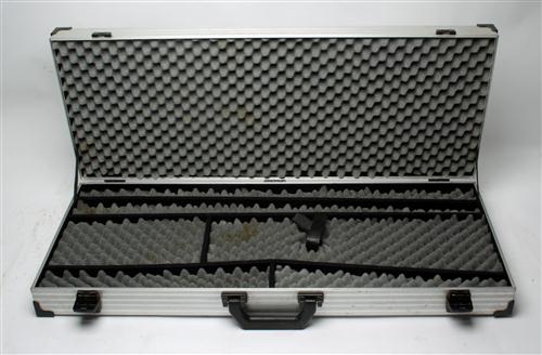 A SINGLE ALUMINUM FLIGHT CASE, to fit barrels up to 31in., boxed foam interior, two latch locks (keys missing)
