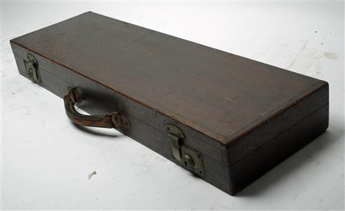 A WOODEN ROOK RIFLE GUNCASE, suitable for 27 1/2in. barrels, lined with green baize, two locks (key missing).