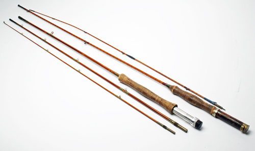 TWO VINTAGE SPLIT CANE TROUT FISHING RODS,
