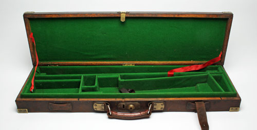 suitable for 29in. barrels,re-lined with green baize, brass lock (key missing)