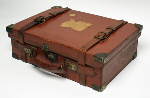 A BRASS-CORNERED OAK AND LEATHER CARTRIDGE MAGAZINE,