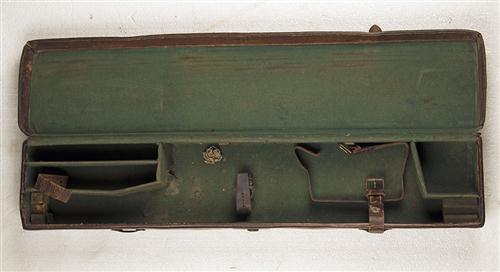 A SINGLE LEATHER GUNCASE, suitable for 30in barrels, lined with green baize