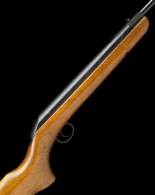 the first a 'CADET' model circa 1956 with blued, sighted 15in. barrel, plain blued air chamber etched with 'THE BIRMINGHAM SMALL ARMS CO. LTD., CADET .177 AIR RIFLE, MADE IN ENGLAND', plain beech pistol-grip half-stock, the other a 'CADET MAJOR' model of similar date with blued, sighted 18 1/4in. barrel, plain blued air chamber etched with 'THE BIRMINGHAM SMALL ARMS CO. LTD., CADET MAJOR .177 AIR RIFLE, MADE IN ENGLAND', plain beech pistol-grip half-stock, both guns appearing little used with some isolated surface corrosion and storage marks