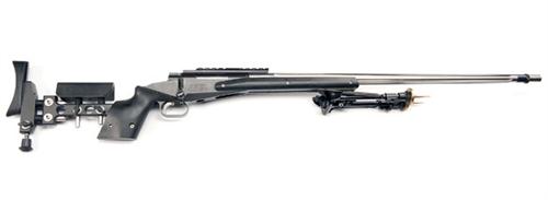 30in. fluted barrel by Border Barrels (Scotland), receiver with telescopic sight rail, System Gemini synthetic stock with fully adjustable butt, Harris bi-pod; together with its original laminated wood thumbhole pistolgrip stock