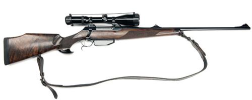 receiver mounted with a Schmidt & Bender 3-12z telescopic sight in quickly-detachable mounts, blued finish, set trigger, button safety, triggerguard with middle finger hook attachment, well-figured pistolgrip stock with cheekpiece, sculpted pistolgrip-cap, quickly-detachable sling swivels, 14 1/4in. pull including 1in. rubber recoil pad