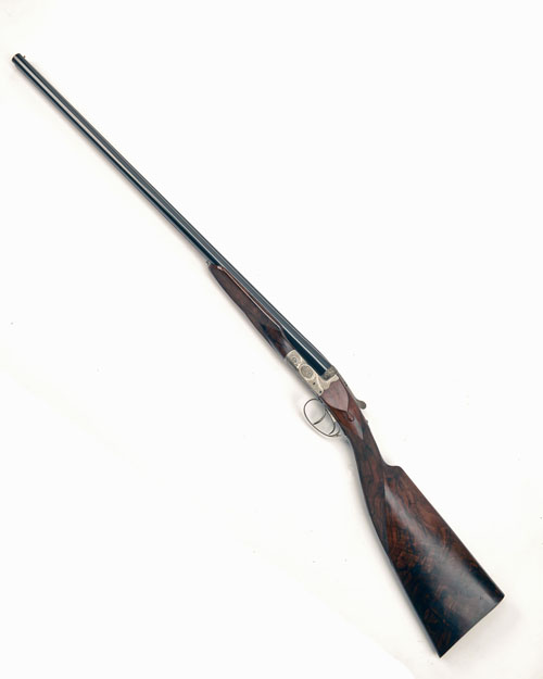 27 3/4in. nitro barrels with raised matt rib, tubes engraved in script 'FABRIQUE NATIONALE HERSTAL' and 'MADE IN BELGIUM. CAL 20. 2 3/4"', 2 3/4in. chambers, bored approx. 1/4 and 1/2 choke, scroll-back treble-grip action with hidden third bite, manual safety, fences deeply carved in relief with oak leaves and acorns, fine bouquet and scroll engraving, the triggerplate signed 'R. BAPTISTE', bright finish overall, 15 1/4in. highly-figured roachbelly stock, beavertail fore-end, weight 6lb. 8oz.