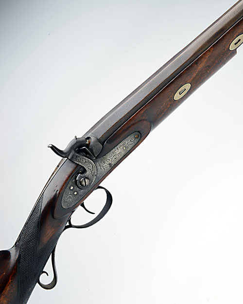 AN 8-BORE PERCUSSION SINGLE-BARREL FOWLING-PIECE SIGNED W.J. MAY, LONDON, no visible serial number,