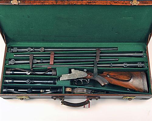 GEBRUDER MERKEL A SIDEPLATED BOXLOCK EJECTOR OVER AND UNDER COMBINATION GUN / RIFLE WITH FOUR SETS OF BARRELS, serial no. 14734,