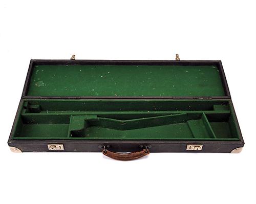 † TWO SINGLE GUNCASES, 1 x black leatherette single guncase, the interior lined with green baize.