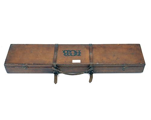 A LEATHER SINGLE GUNCASE, suitable for 30in. barrels, lined with maroon baize