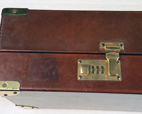 suitable for 28in. barrels, the interior lined with green baize, two brass combination locks