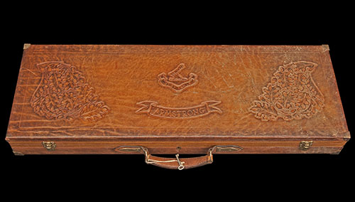 Macnaughton 1879 patent action incorporating later 1894 barrel-cocking design, with standard length toplever, top-strap with solid inspection plate cover and 1879 patent pivoting safety lever, fine acanthus scroll engraving with beaded borderwork, brushed bright finish, triggerguard dented, 14in. figured stock including buttplate, weight 6lb. 12oz. (sleeved) 6lb. 10oz. (new barrels), in a fitted brass-cornered oak and leather case with leather mounted card makers trade label, and provision for both sets of barrels, the lid exterior chased with acorn and oak leaf motifs and the Armstrong crest