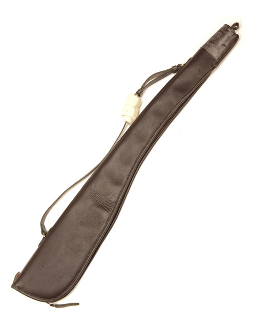 † A NEW AND UNUSED QUALITY LEATHER FLEECE-LINED GUNSLIP WITH MATCHING CARTRIDGE BAG,