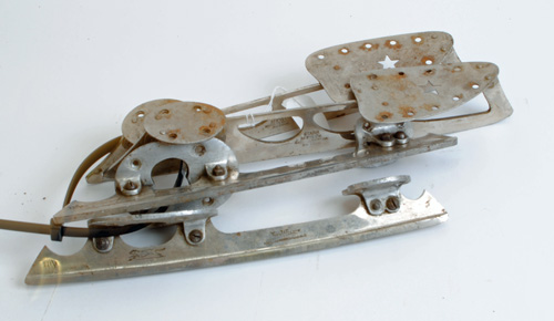 TWO PAIRS OF ICE SKATE BLADES TOGETHER WITH BOOT PARTS,