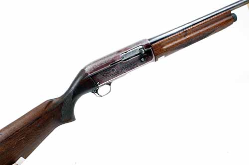 SAVAGE 12-BORE SEMI-AUTO SHOTGUN, serial no. 284247, 26in. nitro barrel including choke, 2 3/4in. chamber, adjustable 'Savage super choke' (broken), action engraved with naive game scene, 12in. semi-pistolgrip stock (chipped), fore-end wood split