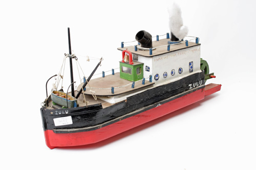A HOME-BUILT MODEL OF A STEAM CARGO VESSEL,