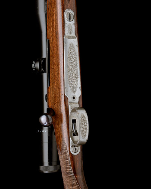cat no. 1283, 25 5/8in. nitro reproved barrel (in 2015), engraved 'CARLO CASARTELLI CONCESIO 7mm REM_MAGNUM', block-mounted open sights with folding leaf sight, ramp-mounted bead fore-sight with folding protector hood, receiver (with thumb cutout) mounted with a Zeiss Diavari-Z 1,5...6x42T* telescopic sight in quickly-detachable mounts, matt top receiver ring, sidewall engraved 'MAUSER-WERKE A.G. OBERNDORF A.N.', bright floorplate and triggerguard with acanthus scroll engraving, figured pistolgrip stock with cheekpiece, engraved steel pistolgrip-cap, sling eyes, 13 7/8in. pull including 3/4in. rubber recoil pad