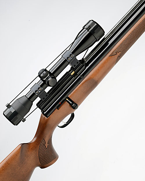 AN FAC-RATED .22 PRE-CHARGED PNEUMATIC REPEATING AIR-RIFLE SIGNED WEBLEY & SCOTT, MODEL AXSOR, serial no. 002639, with 26in. floating barrel including detachable sound-moderator, receiver with aperture for rotary magazine (2 included), anodised air reservoir and beech chequered half-stock TOGETHER WITH a NIKKO STERLING PLATINUM 4x40 telescopic sight