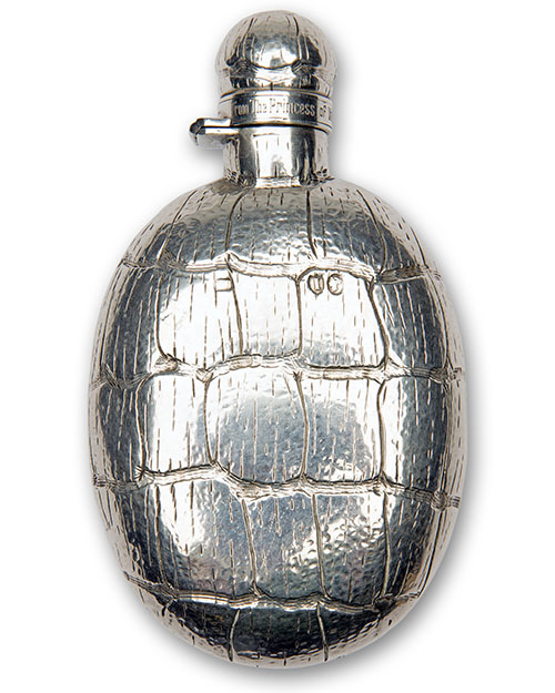 A FINE HALLMARKED SILVER CROCODILE-EFFECT HIP-FLASK,