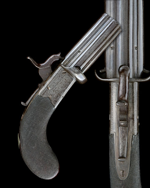 AN 80-BORE PERCUSSION FOUR-SHOT HAND-ROTATED PEPPERBOX POCKET-PISTOL, no visible serial number,