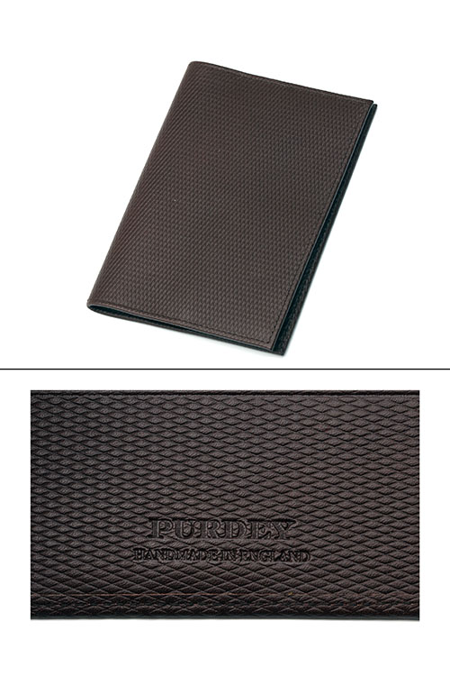 † A NEW AND UNUSED JAMES PURDEY & SONS CHEQUERED LEATHER PASSPORT HOLDER, signed 'PURDEY'