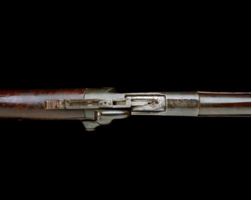 circa 1863-65, with round 28in. barrel, dove-tailed fore-sight blade and rear-sight (rearsight missing), plain receiver with under-lever opening, the top of receiver stamped 'SPENCER REPEATING RIFLE CO. BOSTON, MASS, PAT'D MARCH 6 1860', plain back-action sidelock with external hammer, tangent rear-sight fitted to top-tang, walnut straight-hand butt-stock with magazine tube concealed in the iron heel-plate, walnut splinter fore-end with metal tip, re-finished