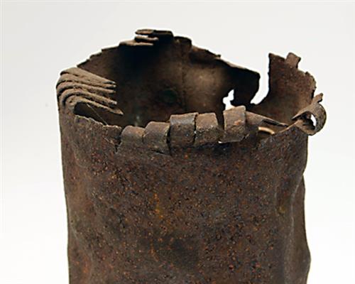 AN UNUSUAL RELIC CANISTER FROM A GRAPESHOT CARTRIDGE, circa 1840's, fired, excavated condition
