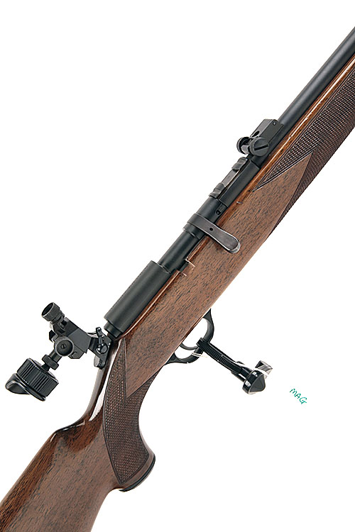 ** BERETTA .22 L.R. SELF-LOADING AND BOLT-MAGAZINE SPORTING RIFLE, serial No. D43786, 23 1/2in. nitro barrel, protected ramp-mounted blade fore-sight, rear-sight missing, fitted with a Beretta rear peep-sight