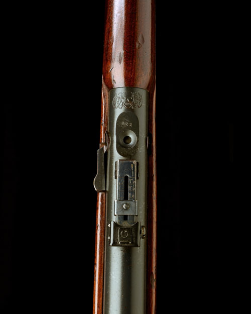 ** A RARE HAKIM, EGYPT .22 UNDER-LEVER SPRING-PISTON AIR-RIFLE, MODEL 'MILITARY TRAINER', serial no. 822, made in 1955 by Anschutz for the Egyptian Government and based on their 1954 model, with a 19 1/2in. barrel, raised fore-sight with tunnel protector, micro-adjustable fore-sight, lever-operated loading tap, the front of air-chamber stamped with a skull & crossbones device and Arabic markings for the National Union Youth Movement, larger 'U' shaped battle-sight midway along air chamber, further Arabic inscriptions to trigger-unit translating as 'Training Airgun Anschutz, Germany 1955', military style three-quarter wood stock, concealed under-lever and fittings for sling