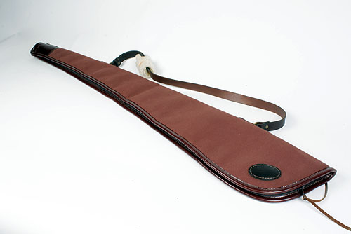 † A NEW AND UNUSED CANVAS AND LEATHER FLEECE-LINED SINGLE GUNSLIP, fitted for 32in. barrels, leather shoulder strap, brass fittings