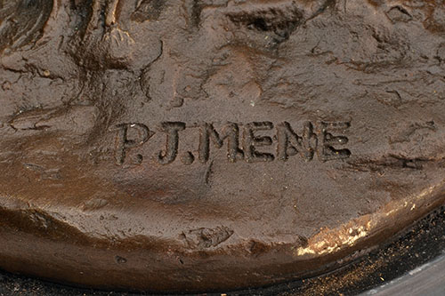 signed P.J. Mene, mounted on a marble plinth, measuring approx. 16in. x 14in. x 7in.
