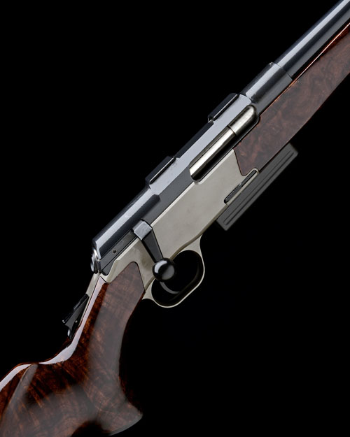 19in. interchangeable nitro barrel (20 1/2in. including detachable muzzle break) with block mounted open sights and ramp-mounted high visibility fore-sight, the receiver mounted with an 'Innomount' quickly-detachable rail and rings, detachable box magazine, 15in. highly-figured pistolgrip stock with cheekpiece and 1/2in. rubber recoil pad