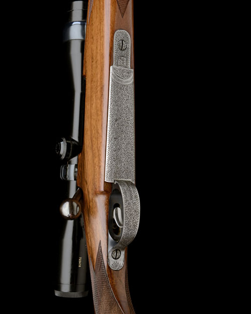 24 5/8in. nitro reproved barrel (in 2015) spuriously engraved with Holland & Holland Bond Street address, block-mounted open sights and folding leaf sight, ramp-mounted bead fore-sight with folding protector, the receiver (with thumb cutout) mounted with a Carl Zeiss Diatal-DA 6x42 telescopic sight in quickly-detachable mounts, matt top receiver ring with acanthus scroll engraving to the sides, hinged straddle floorplate with push button release, fully scroll engraved and with 'HOLLAND & HOLLAND' in a cartouche, figured pistolgrip stock with cheekpiece, engraved steel pistolgrip-cap, darkwood finial, sling eyes, 14 3/8in. pull including 3/4in. rubber recoil pad