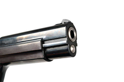 for 1974, with two 4 1/2in. barrels (one for each calibre), two corresponding blued and sighted slides, blued frame, spurred hammer, chequered walnut grips and heel magazine release; TOGETHER WITH its manufacturers bespoke abs plastic case with compartments for the pistol and the card carton for the conversion unit and including a magazine for both calibres