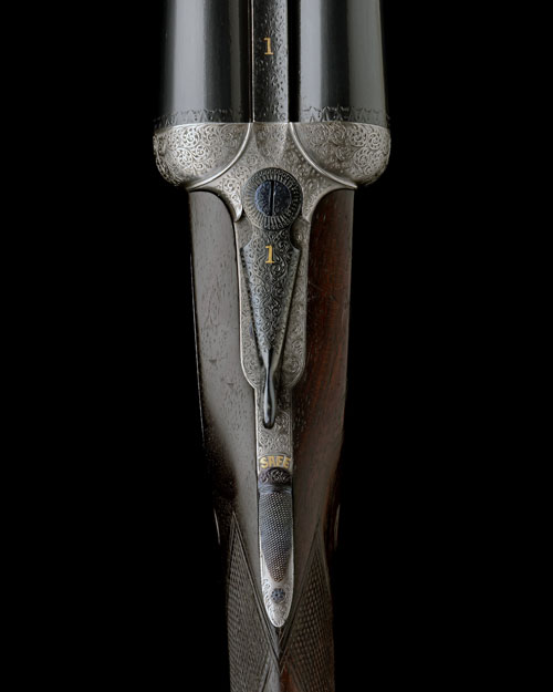 30 1/4in. Whitworth-steel nitro chopperlump barrels, rib engraved 'W.J. JEFFERY & CO. 13 KING STREET. ST. JAMES'S. ST. LONDON.', and gold-inlaid '1', the tubes engraved 'SIR JOSEPH WHITWORTH'S FLUID PRESSED STEEL', 2 1/2in. chambers, bored approx. 1/4 and 1/2 choke, toplever gold-inlaid '1', automatic safety with gold-inlaid 'SAFE' detail, semi-selective single trigger, fine acanthus scroll engraving surrounding game scenes of hound and fowl, brushed and blued finish overall, 13 3/4in. figured stock (minor setting crack rear of left lockplate) including horn buttplate, weight 6lb. 14oz.