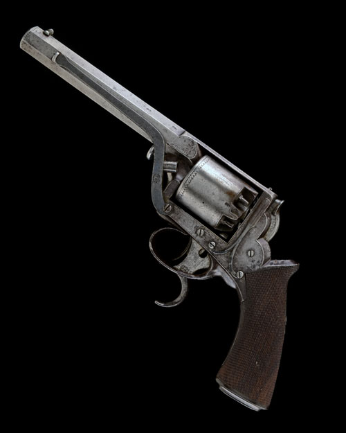 circa 1855, with octagonal 6 1/2in. barrel, dove-tailed bead fore-sight, engraved band at muzzle, the borderline engraved top-strap signed 'GARDEN & SON, 200 PICCADILLY, LONDON', borderline engraved solid frame with inverted 'Y' shaped safe spring, spurless hammer, finely chequered walnut butt with shaped iron butt-cap, trigger stamped with 'W. TRANTER'S PATENT No.1440' and extended blade protruding from the bow, Tranter's Patent loading lever mounted to left hand side of frame, minimal traces of finish; TOGETHER WITH a period mahogany storage case (patched bullet-hole to lid) and lined and compartmented in green baize together with a number of period accessories including a matching number bullet mould, cleaning rod, oil-bottle,turn-screw, nipple-key, caps and lubricating compound.