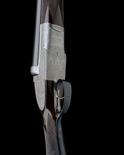 27in. nitro barrels with matt sight rib, open sights and bead foresight with flip-up moonsight (missing insert), tubes engraved 'HOLLAND & HOLLAND. 98, NEW BOND STREET, LONDON. "PARADOX" FOSBERY PATENT.', 2 7/8in. chambers, Col. G.Vincent Fosbery V.C. patent rifled chokes, patent no. 7568 of 1885, treble-grip action with protruding crossbolt, elongated top strap, manual safety with gold-inlaid 'SAFE' detail, back action sidelocks with gold-inlaid cocking-indicators, chequered front trigger, beaded border and bold acanthus scrollwork with strapwork detailing, the underside engraved 'CHARGE 8 DRAMS 2 7/8 BRASS CASE', brushed bright and reblued finish overall, 14in. figured stock with cheekpiece and low rounded comb, including 1in. rubber recoil pad, fore-end with grip-catch release lever, weight 12lb. 15oz.