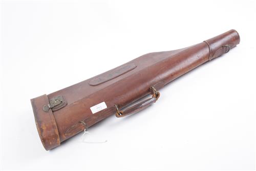 A SINGLE LEATHER LEG-OF-MUTTON GUNCASE, fitted for 28in. barrels, brass lock (key missing)