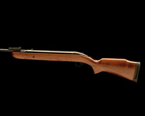 circa 1993, with blued sighted 18 1/2in. barrel (rear-sight damaged), rotary breech with load-ramp, plain blued air-chamber railed for a telescopic sight (not fitted with a 'maxi-grip), rounded sloping trigger-unit with top-mounted sliding safe, unchequered beech half-stock with rounded fore-end tip and ventilated recoil-pad, the whole appearing little used