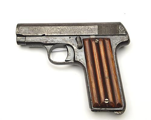A .32 ACP (7.65mm) SEMI AUTOMATIC PISTOL SIGNED UNION, serial no. 161, French circa 1930, with 3in. barrel, ribbed slide with sighting groove, iron frame, replacement wood grips, missing magazine